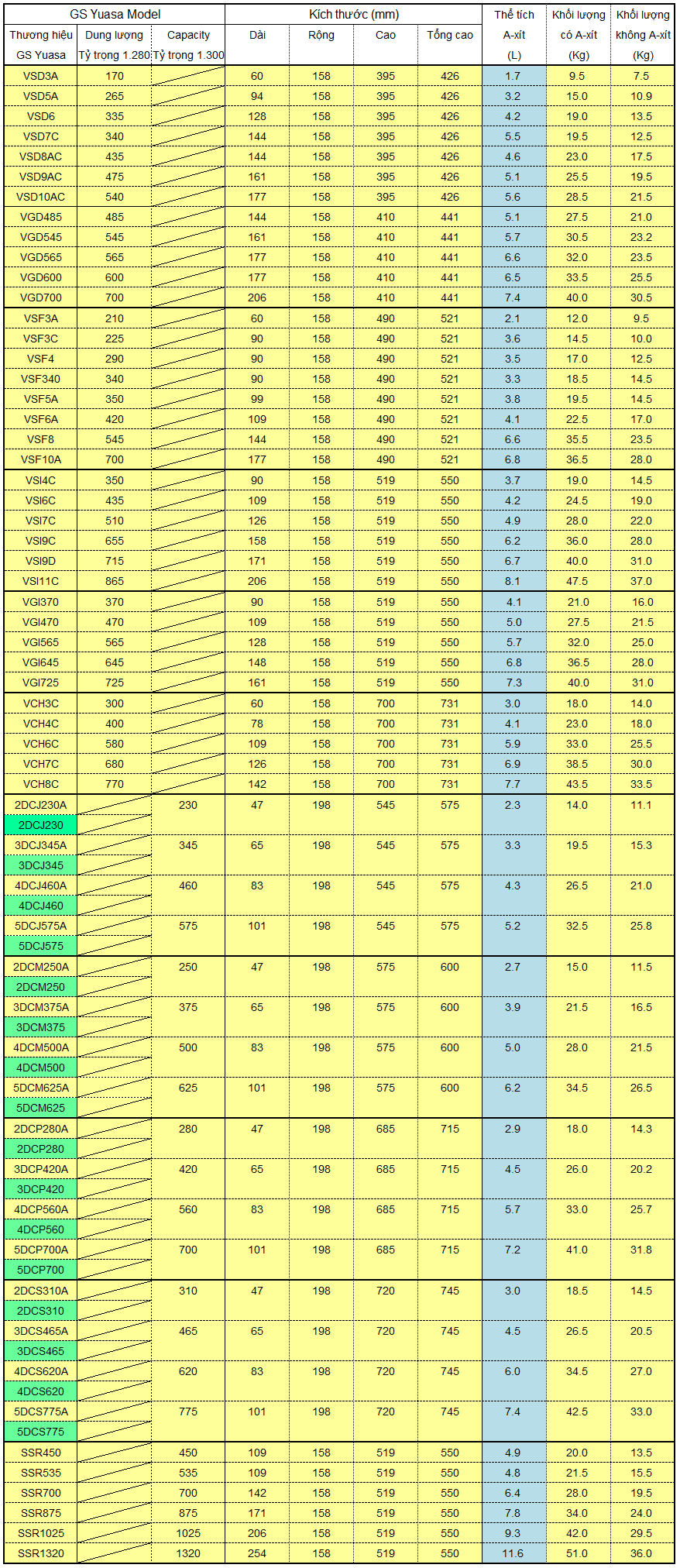Ắc quy GS - YUASA CHO XE NÂNG ĐIỆN DOOSAN, TCM, KOMATSU, TOYOTA